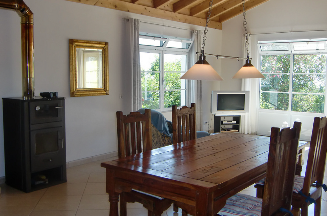 Wonderfully cool in the summer, and warm and cozy in the winter, thanks to the wood stove